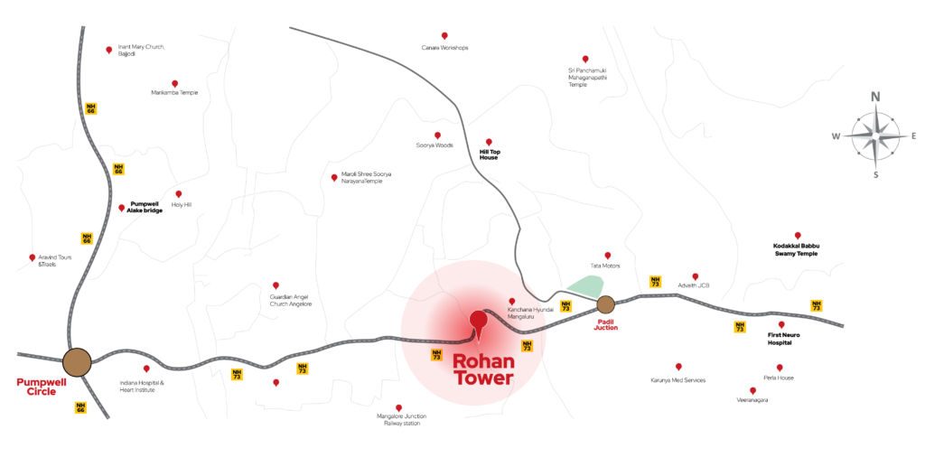 Rohan Towers is designed to give its occupants the pleasure of enjoying the scenic beauty of Coastal Karnataka from their homes, away from the bustle of the city, yet close to all essential facilities like schools, colleges, hospitals, railway station and arterial roads.
